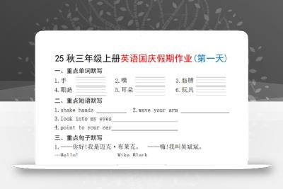 - 25秋三上英语国庆假期作业2-手嘴(含答案16页) 2025-10-02