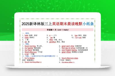 - 新译林版三上英语晨读晚默小纸条(12页) 2025-10-01