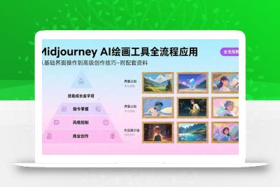 该课程系统讲解Midjourney AI绘画工具的全流程应用,从基础界面操作到高级创作技巧,涵盖关键词指令解析、漫画头像制作、海报设计、3D人物生成、线稿转高质量图等实战场景,最终帮助学员建立完整的Midjourney创作体系。课程包含10节实操视频及配套资料,实现零基础到精通的进阶路径。