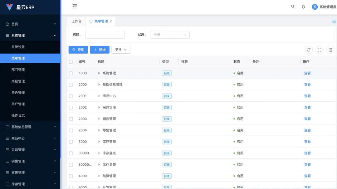 适用中小企业完全开源、永久免费的进销存ERP管理源码,基于SpringBoot框架,专为中小企业提供完全开源、永久免费且用户友好的进销存ERP系统,旨在解决开店、管理和数据统计等方面的挑战。系统主要涵盖基础信息管理、商品中心、采购管理、销售管理、零售管理、库存管理、盘点管理和结算管理等模块,各业务模块均支持灵活的参数配置,以适应不同的业务场景。同时,丰富的报表功能为用户提供多维度的数据分析支持。此外,系统还支持对部门、岗位、角色和用户权限等进行细致管理,最终实现业务的线上化、透明化和简化管理,促进物流、资金流和信息流的全面整合与管控。