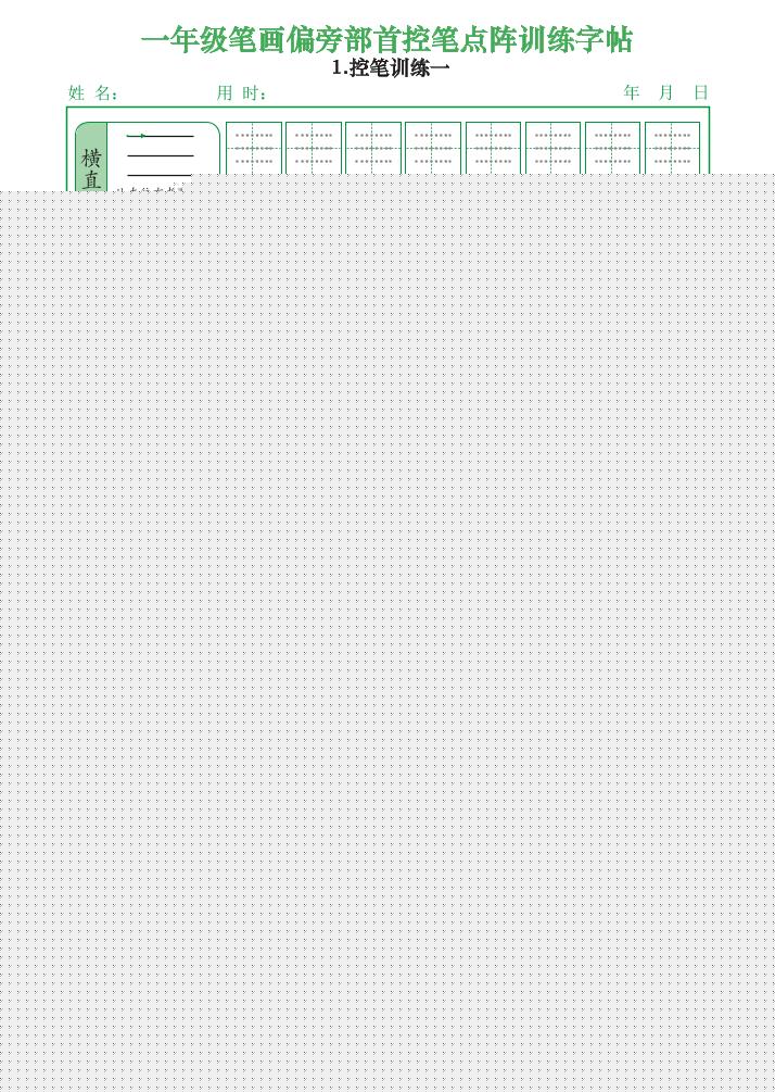 聚码网 一年级 一上语文笔画偏旁部首控笔点阵训练字帖(12页) http://www.appstore168.com/388.html