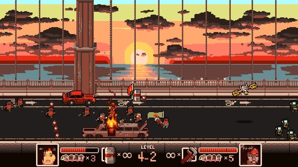 像素美术风格充满力量感。挥舞的旗帜、飞散的传单、燃烧的障碍物,共同构成充满张力的街头战场。每个关卡都是对现实社会议题的隐喻:从反抗996工作制到夺回被强拆的家园,让你在游玩时不禁思考现实中的公平正义。