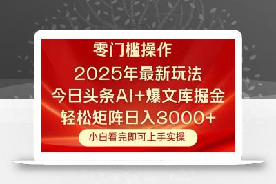 - 今日头条托管,AI短视频打金,你出账号,我来运营,最高躺賺1W【揭秘】 2025-10-30