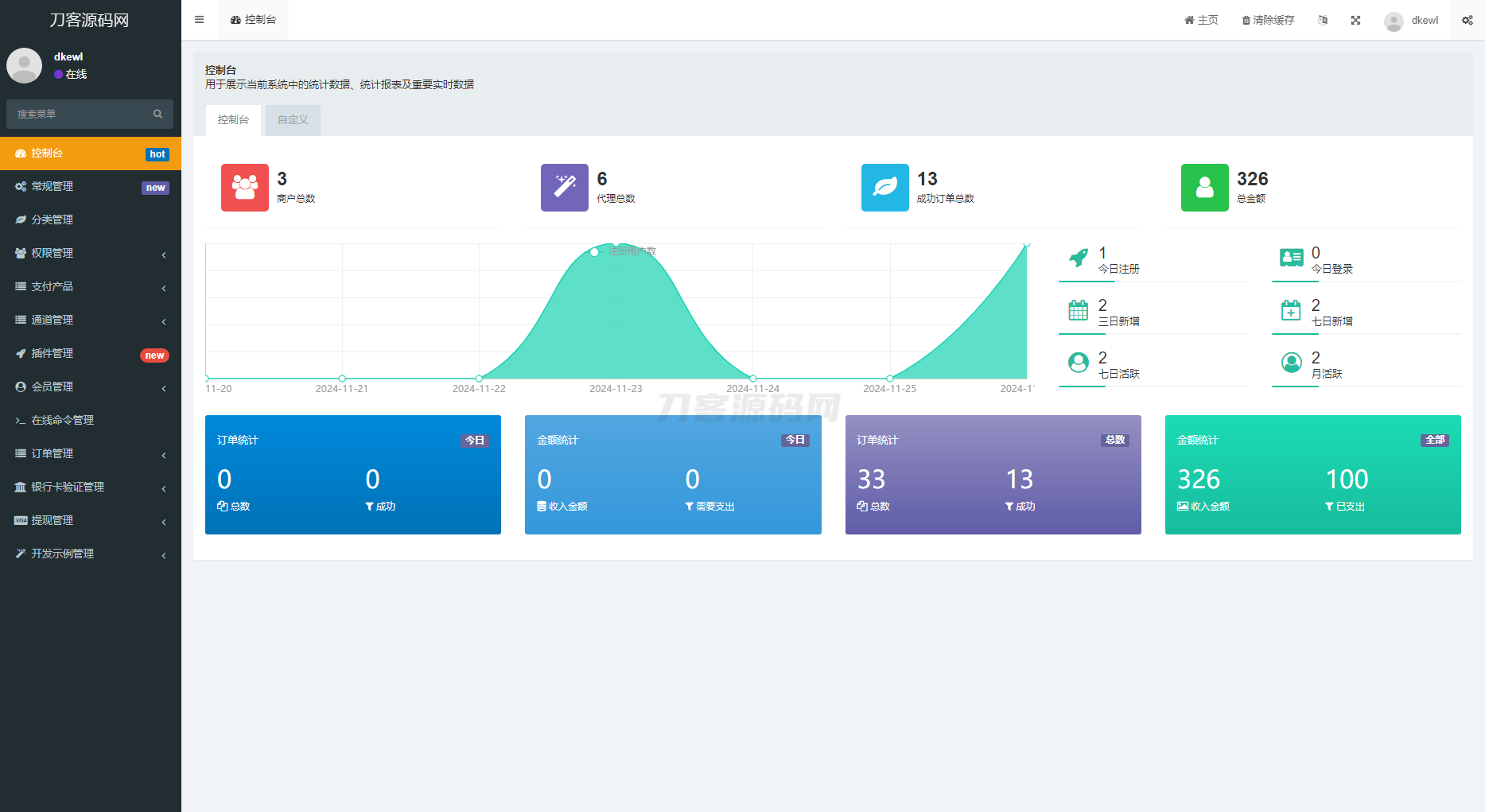 系统采用FastAdmin框架独立全新开发,安全稳定,系统支持代理、商户、码商等业务逻辑。