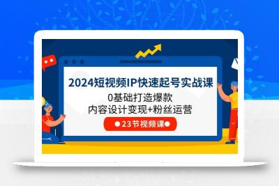 短视频IP快速起号实操课,0基础全套运营实操课,爆款内容设计+粉丝运营+内容变现