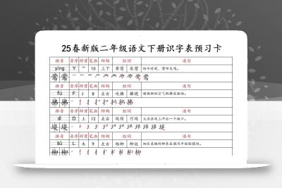 - 新二上语文写字表+词语表晨读晚默情景小纸条(27页) 2025-10-31