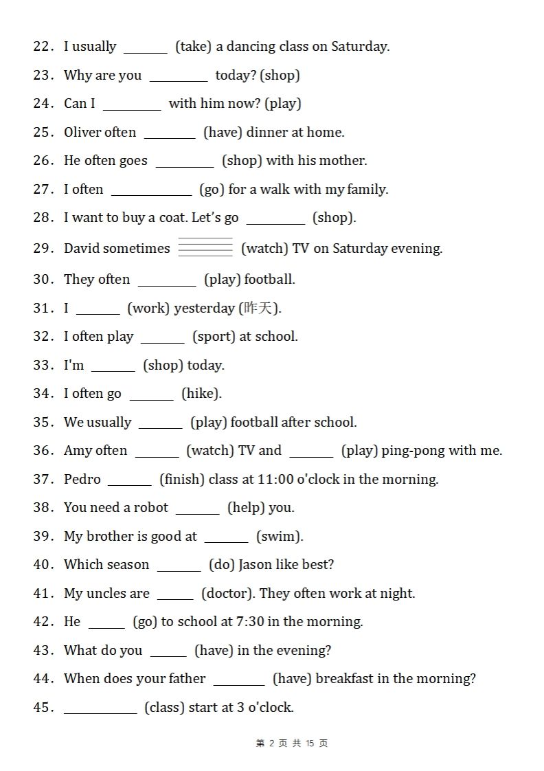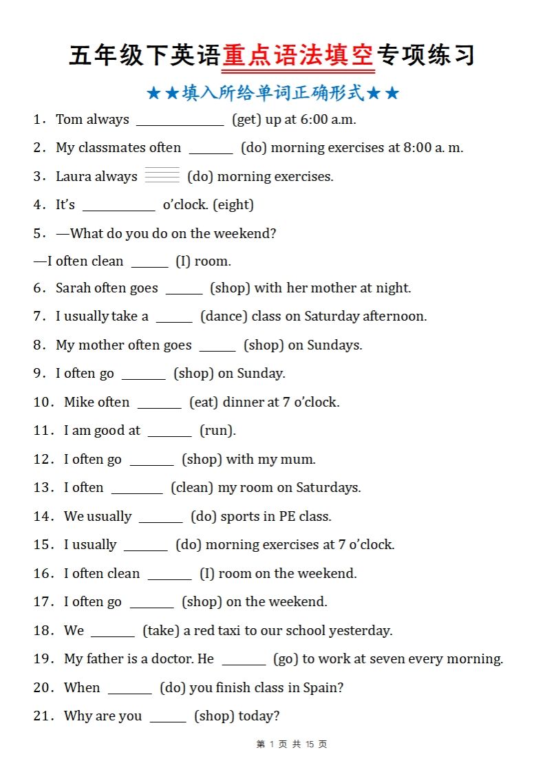 聚码网 五年级 五下英语人教PEP重点语法填空专项练习 http://www.appstore168.com/63940.html