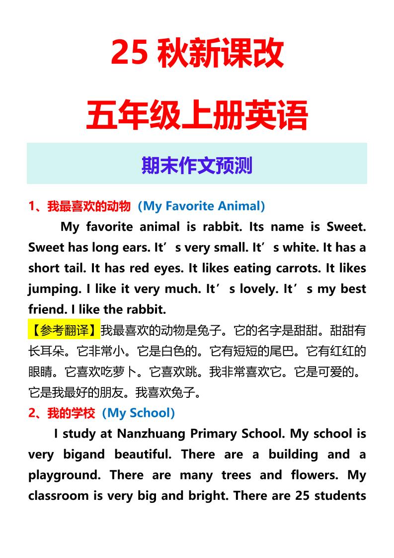 聚码网 五年级 【2025秋新版】五年级上册英语期末作文预测 http://www.appstore168.com/64344.html