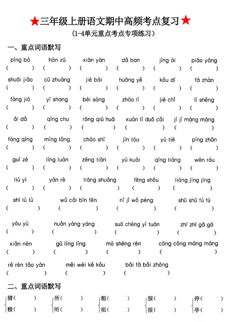 - 三上语文期中高频考点 2025-10-29