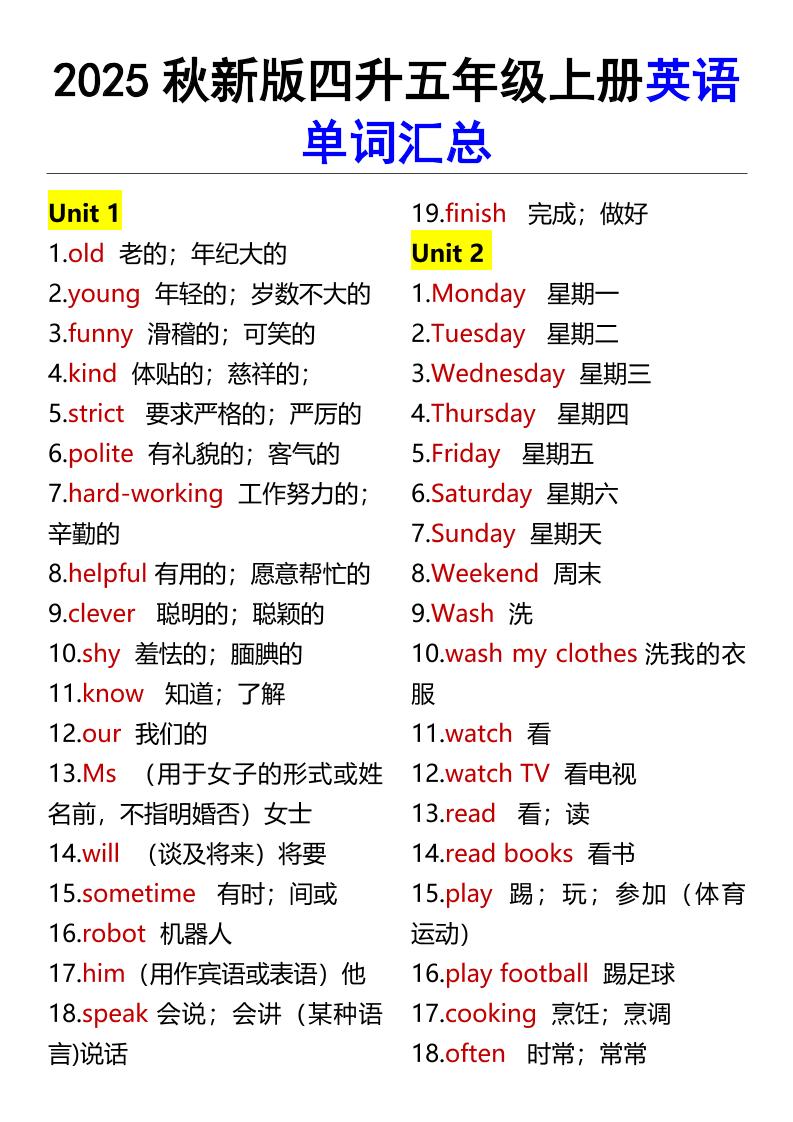 聚码网 五年级 【2025秋新版】四升五年级上册英语单词汇总 http://www.appstore168.com/64825.html