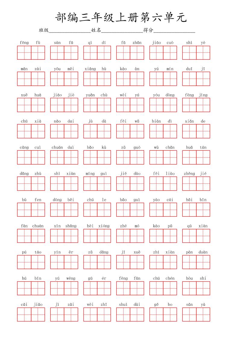 聚码网 三年级 看拼音写词语三年级上册语文第六单元 http://www.appstore168.com/65029.html