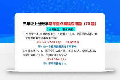 - 三上数学计算专项每日一练50天(口算填空竖式脱式解决问题思维题)50页 2025-10-27