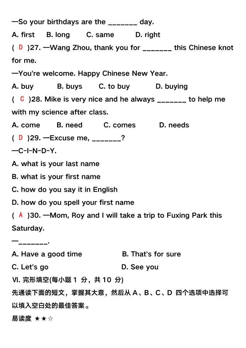 - 【2025秋新版】人教版七年级英语上册_期末复习专练【阅读理解】 2025-10-19