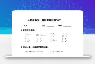 聚码网 六年级 六年级下册数学每日计算小纸条9页 http://www.appstore168.com/66308.html