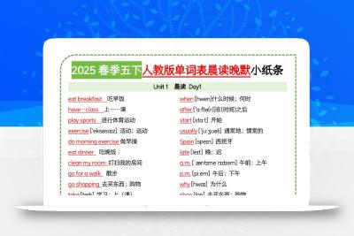 聚码网 五年级 五下英语人教版单词表英汉互译小纸条 http://www.appstore168.com/66627.html