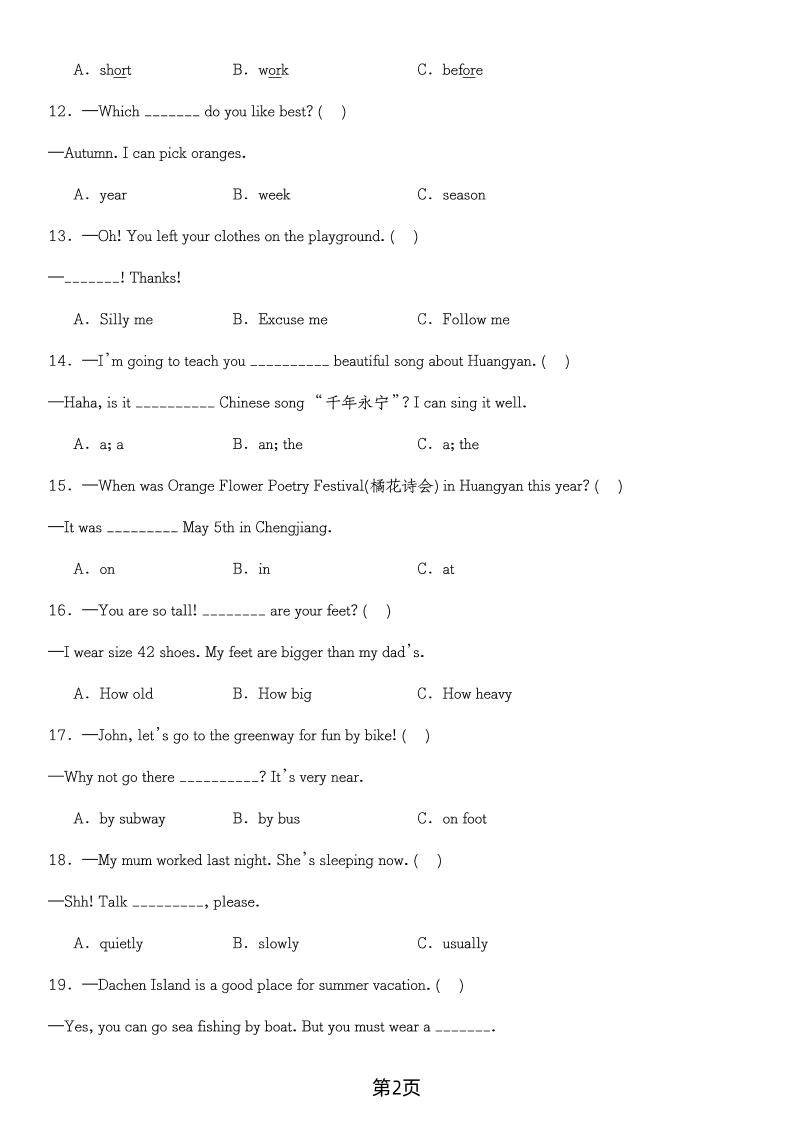 聚码网 六年级 六年级下英语选择题100题(含答案) http://www.appstore168.com/67655.html