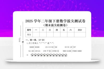 聚码网 二年级 25二下数学期末拔尖测试卷(人教)含答案5页 http://www.appstore168.com/68124.html