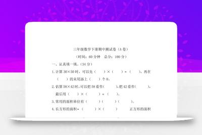 聚码网 三年级 三下冀教版数学期中考试试卷-2 http://www.appstore168.com/69227.html