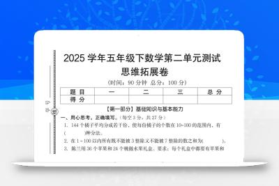 聚码网 五年级 【人教版】2025学年第二学期五年级数学第三单元综合测试卷 http://www.appstore168.com/69363.html