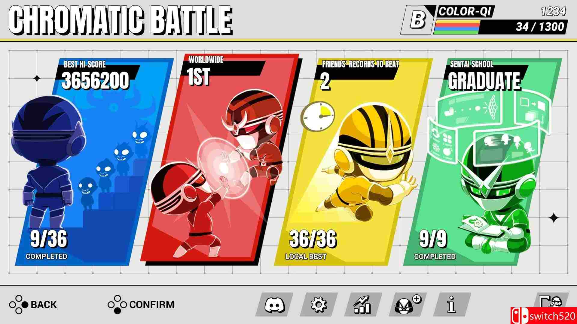 《四色战队:超级战队色彩勇士》是一款动作冒险类(ACT)游戏,参与每月举办的线上速通锦标赛,冲击社区排行榜巅峰!在《四色战队》绚丽的色彩混战中,既可组队协作,亦可与最多4名好友激情对抗——发射元气子弹,用你的色彩征服战场!无论是客厅派对联机狂欢,还是单人硬核挑战,都能畅享极致乐趣!switch520