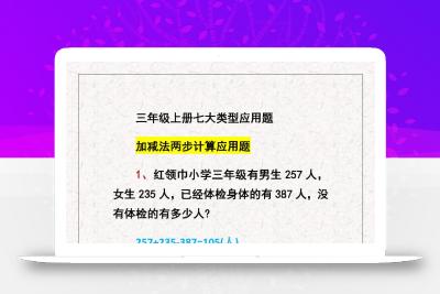 聚码网 三年级 三上数学【常考重点易错应用题70题】三上数学答案 http://www.appstore168.com/70278.html