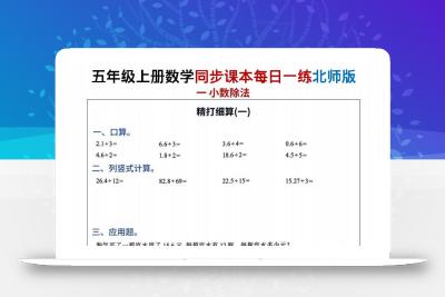 - 五年级上数学同步课本计算每日一练《北师版》 2025-10-30