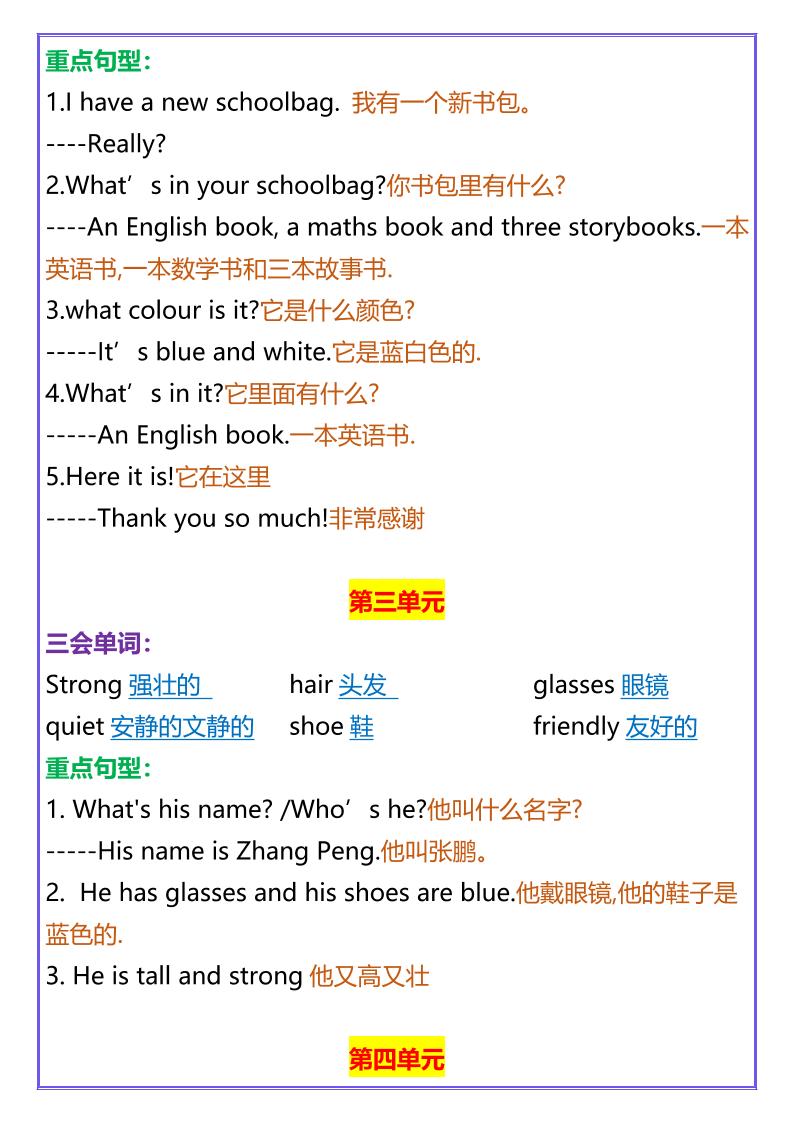 聚码网 四年级 【2025秋新版】四年级上册英语Unit1-8重点知识 http://www.appstore168.com/72541.html