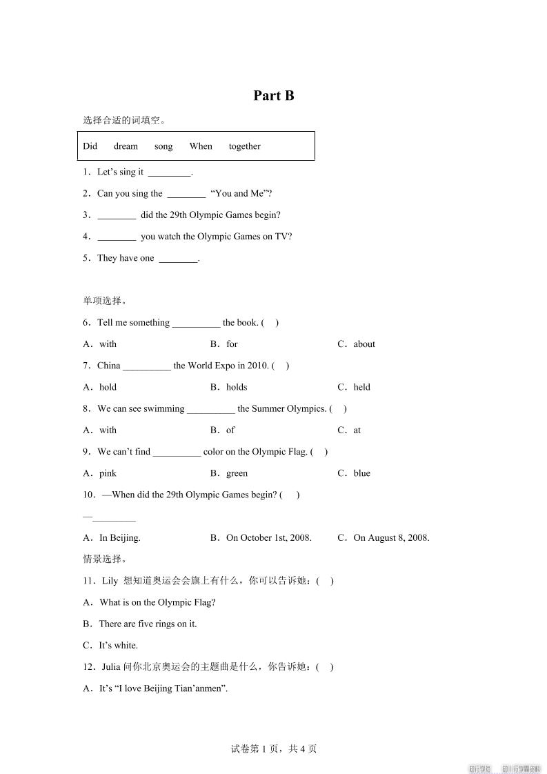 聚码网 六年级 闽教版英语六年级上册Unit1PartB练习卷 http://www.appstore168.com/73551.html