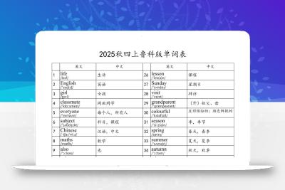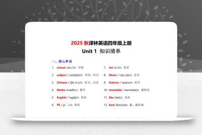 聚码网 四年级 2025秋译林英语四上Unit1知识清单-默写版 http://www.appstore168.com/74466.html