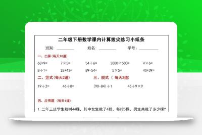 聚码网 二年级 二下数学计算每日一练60天(口算竖式脱式应用题)60页 http://www.appstore168.com/74690.html