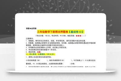 聚码网 三年级 三年级数学下册期末押题卷【基础卷01】 http://www.appstore168.com/75374.html