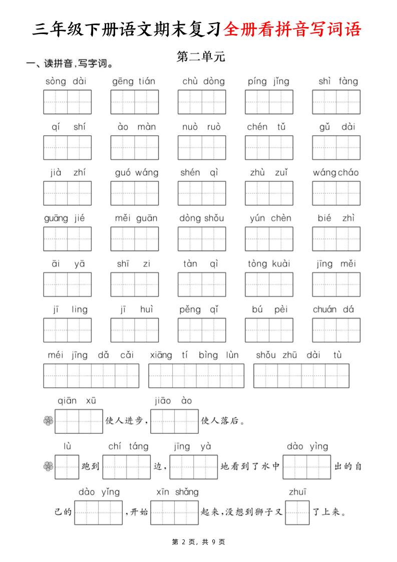 聚码网 三年级 三下语文期末复习全册看拼音写词语(含答案9页) http://www.appstore168.com/76229.html