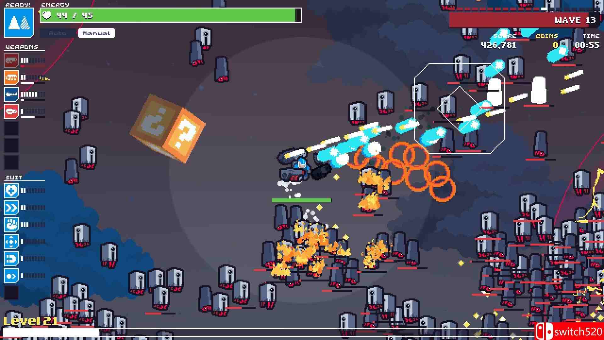 《机甲守护者》是一款动作冒险类(ACT)游戏,《机甲守护者》是一款结合了街机射击和类Roguelike元素的双摇杆生存射击游戏。玩家将驾驶先进的机甲战斗服,面对源源不断的外星入侵者,使用强大的武器进行反击。每次游戏都提供独特的挑战,玩家可以通过升级装备、解锁新机甲和技能,提升战斗力。switch520