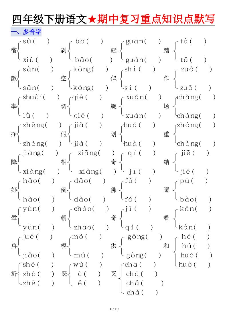 聚码网 四年级 四下语文期中复习重点知识默写 http://www.appstore168.com/77324.html