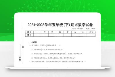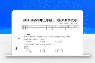 聚码网 五年级 24-25五下北师大版数学期末试卷三(含答案18页) http://www.appstore168.com/77528.html