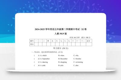 聚码网 五年级 人教版2024-2025学年英语五年级第二学期期中考试(A)卷 http://www.appstore168.com/77864.html