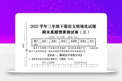 聚码网 三年级 25学年三下语文期末真题情景卷一(含答案7页) http://www.appstore168.com/78054.html