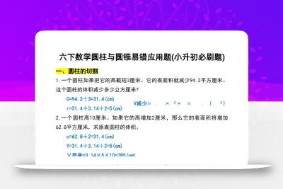 聚码网 六年级 六年级下数学圆柱的体积专项练习 http://www.appstore168.com/78128.html