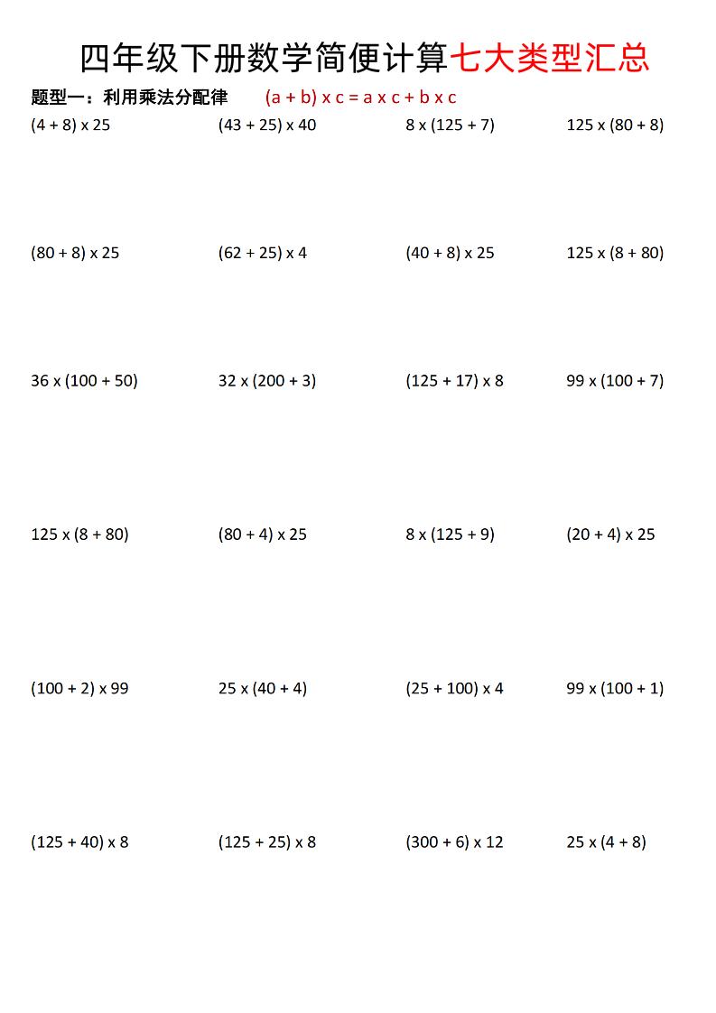 聚码网 四年级 四年级下数学简便计算七大类型汇总 http://www.appstore168.com/78129.html