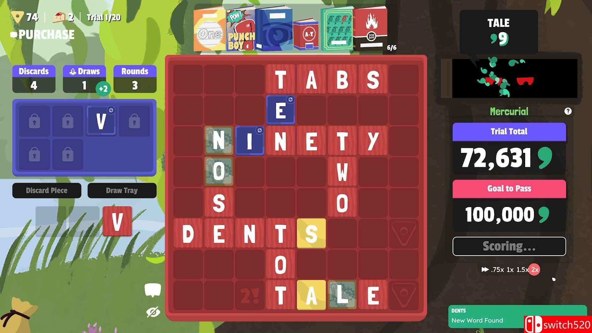 《词语守卫》是一款动作冒险类(ACT)游戏,《词语守卫》是一款结合拼字与卡牌构筑的类Roguelike游戏。玩家通过拼写真实或虚构的单词,利用具有规则破坏性的魔法书籍,组成高分连击。构建字母瓷砖的卡组,寻找其中的协同效应,挑战不断升级的试炼。switch520