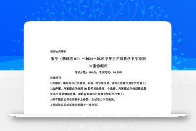 聚码网 五年级 五下苏教版数学【2024-2025学年期末素养测评试卷(基础卷01)】 http://www.appstore168.com/79693.html