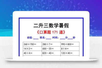 聚码网 三年级 二升三数学暑假《口算练习题60道》汇总-三上数学 http://www.appstore168.com/79757.html