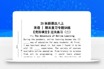 - 【2025秋新版】人教版八上英语_期末复习专题训练【完形填空】过关练习(二) 2025-10-20