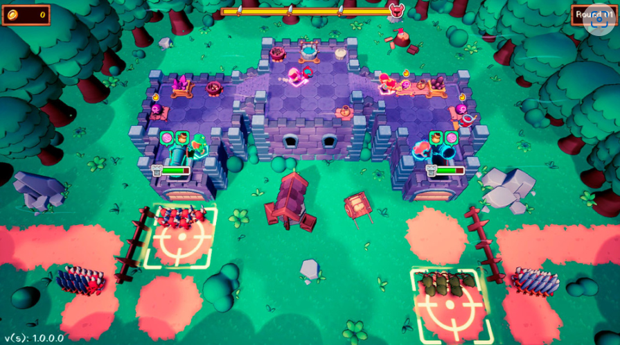游戏核心玩法简单却充满挑战——你们是王国最不可靠的守城小队,必须在蜂拥而至的敌军面前分工合作:有人拼命收割小麦,有人负责熔炉锻造,有人狂奔运送弹药,最后还得有人精准操作炮台把敌人轰上天!本作新增了动态天气系统与昼夜交替,暴风雪会冻结资源运输,黑夜则让敌军更加神出鬼没。更有趣的是新增的“职业转换”机制,每位玩家可随时切换工匠、厨师、炼金师等不同身份,应对不断升级的战场需求。