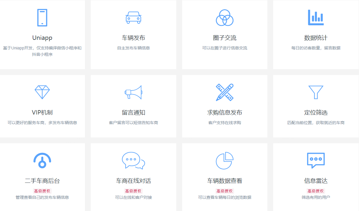 基于ThinkPHP+Uniapp开发的一款二手车置换平台小程序系统,为买家和卖家提供了一个交流和交易的平台,促进了二手车市场的发展!
