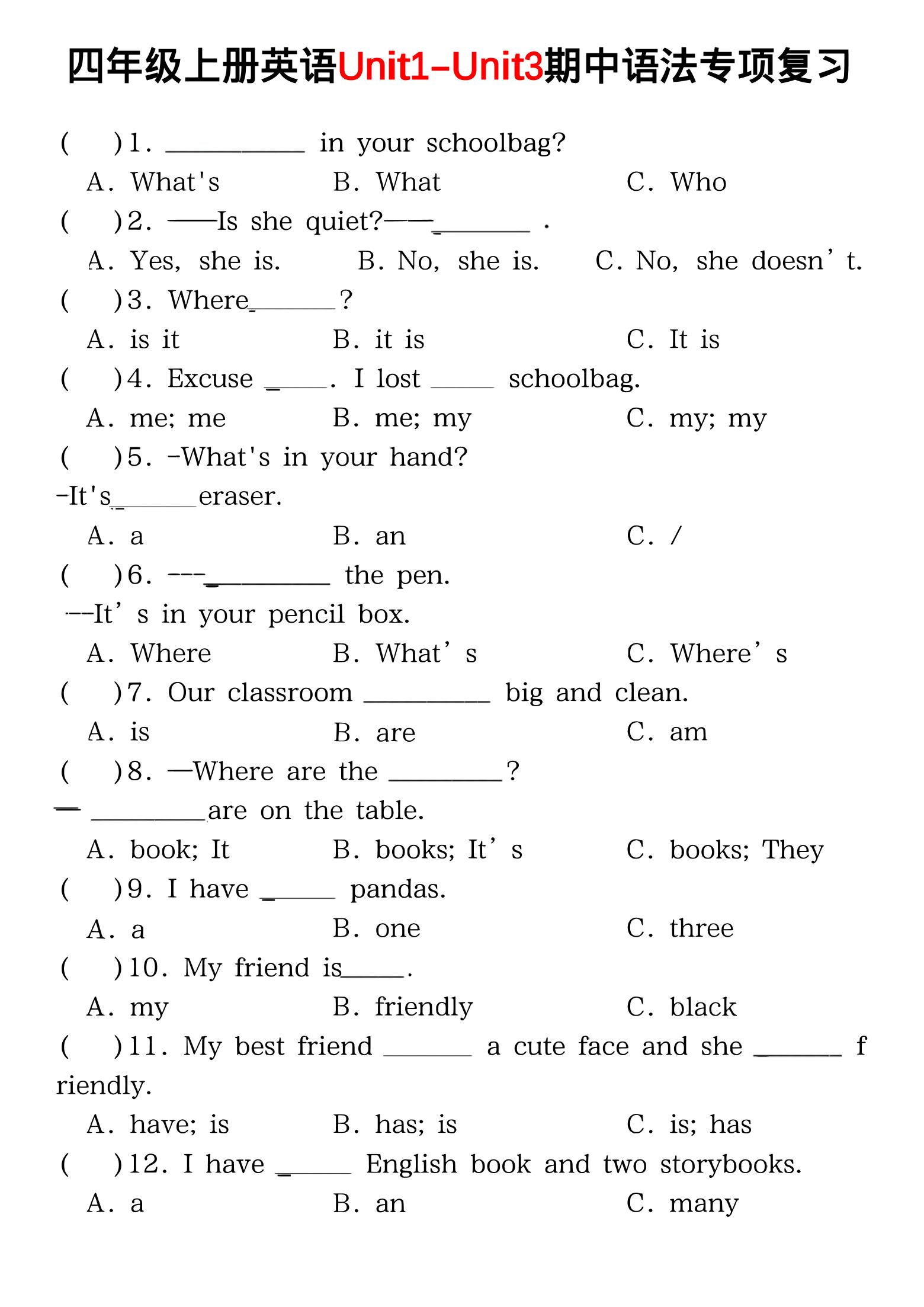 聚码网 四年级 四年级上PEP版英语期中语法专项复习 http://www.appstore168.com/89860.html