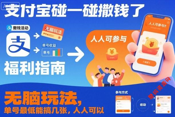 支付宝碰一碰撒钱了,无脑玩法,单号最低能搞几张,人人可以撸【揭秘】