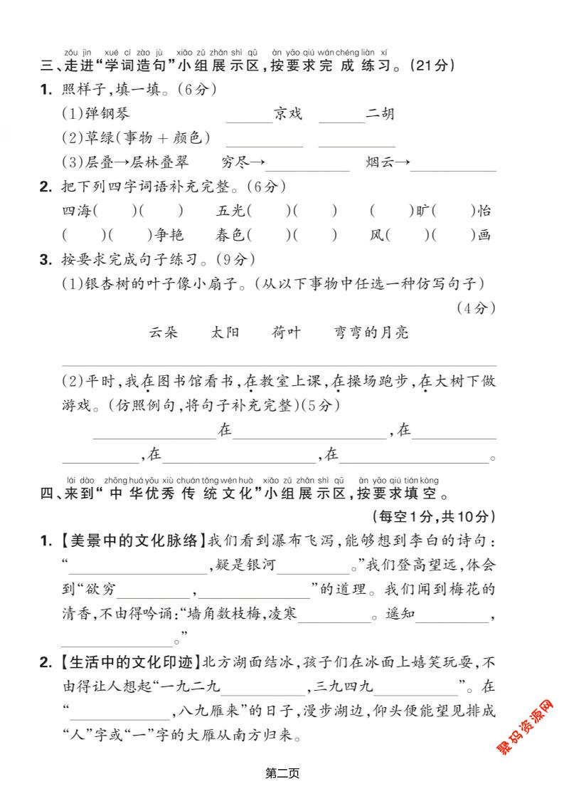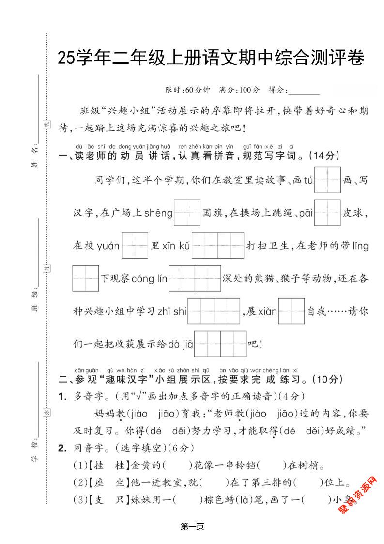 聚码网 二年级 25学年二上语文期中综合测评卷(含答案5页) http://www.appstore168.com/90449.html