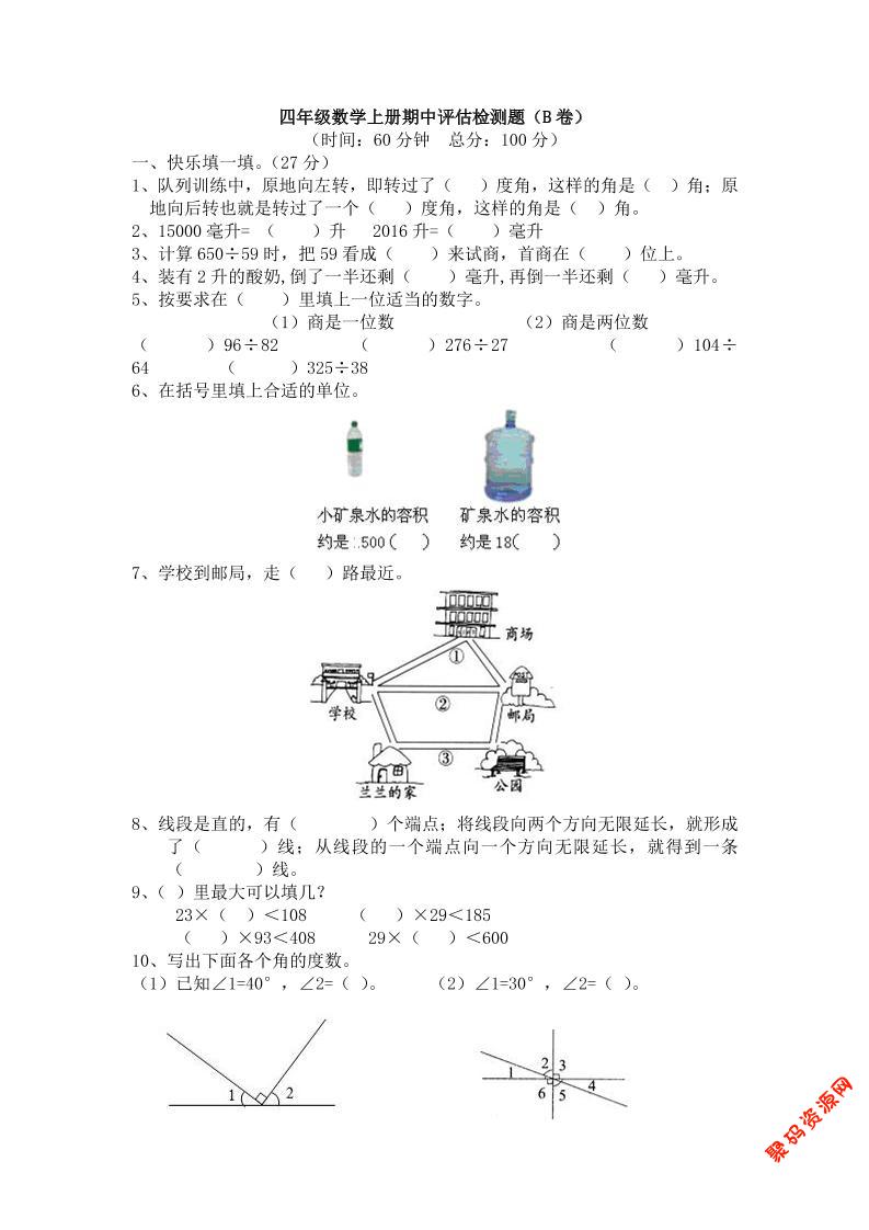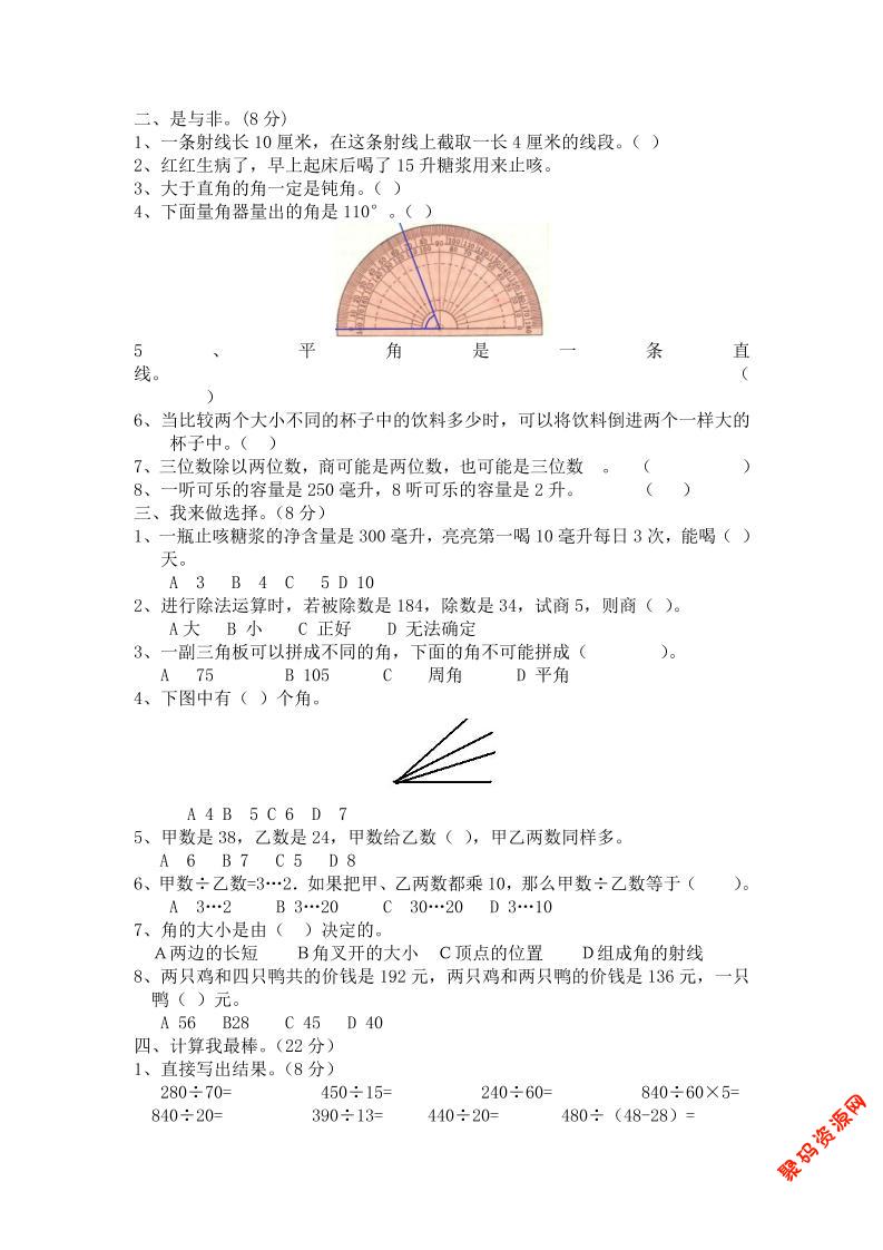 聚码网 四年级 四上冀教版数学期中检测卷.2 http://www.appstore168.com/90847.html