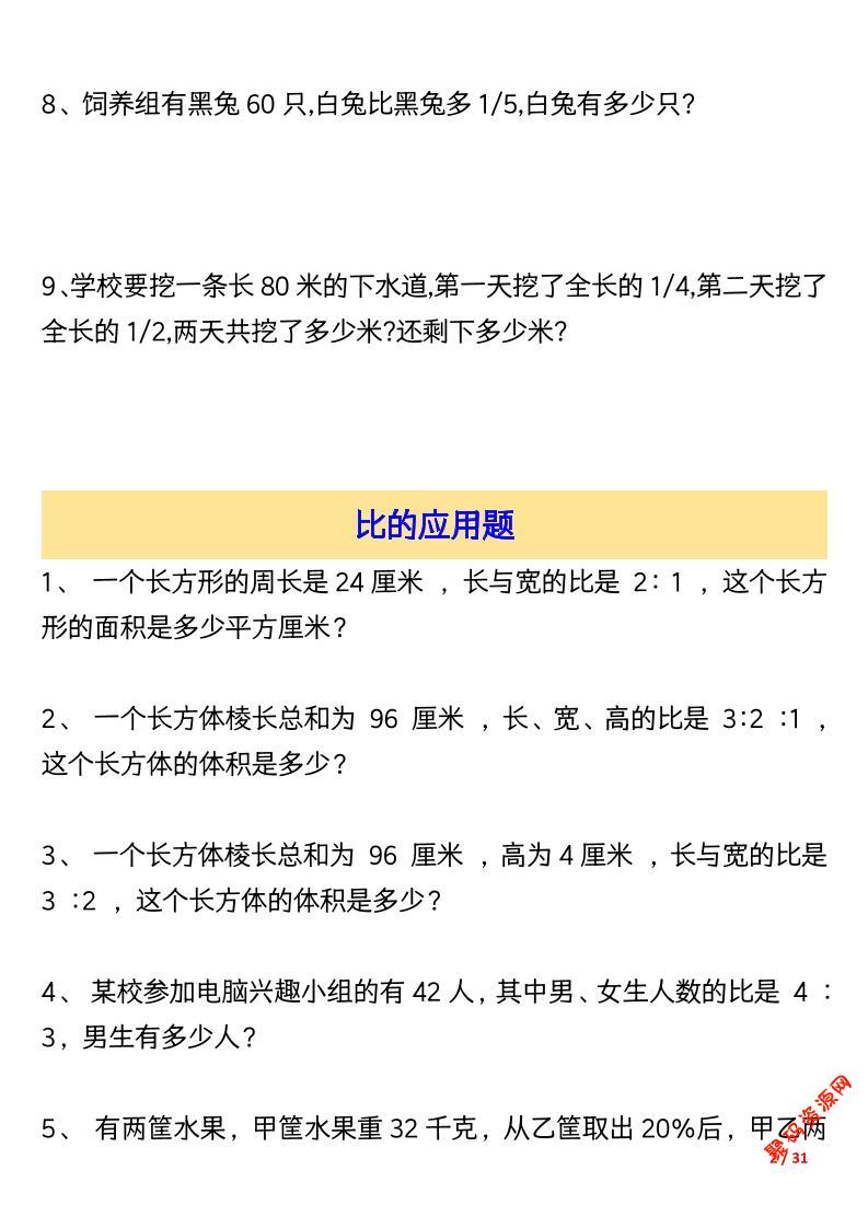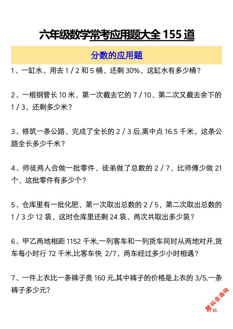 聚码网 六年级 六上数学常考应用题大全155道(含答案31页) http://www.appstore168.com/90868.html